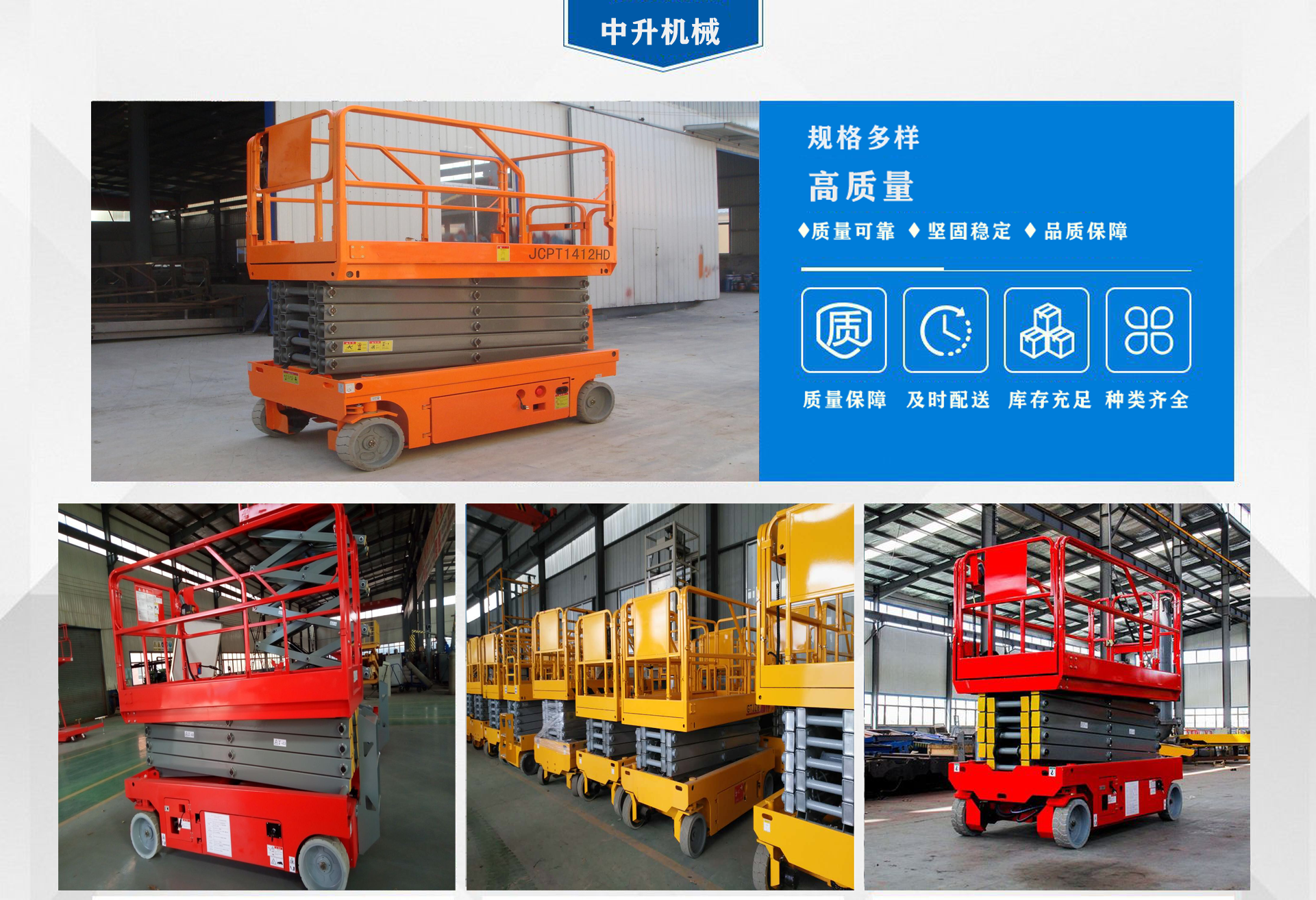 濟(jì)南中升機(jī)械制造有限公司主營自行式升降機(jī),自行走升降機(jī),自行式升降平臺,移動升降平臺,移動式升降平臺等產(chǎn)品,產(chǎn)品廣泛用于廠房維護(hù)、工業(yè)安裝、設(shè)備檢修、物業(yè)管理、倉庫、航空、機(jī)場、港口、車站、加油站、體育場、展覽館等多種行業(yè)和場所, 公司設(shè)備精良、工藝合理、檢測手段齊全,技術(shù)力量充足,公司創(chuàng)立伊始即本著“專注、專心”的經(jīng)營理念,依托技術(shù)團(tuán)隊優(yōu)勢和設(shè)備硬件保障,全力打造良心的升降平臺企業(yè)。 我公司始終以“品質(zhì)為本,服務(wù)至上”作為企業(yè)宗旨。只要你訂購了我公司的產(chǎn)品,無論你身處何方,我們都會及時派出技術(shù)人員為你服務(wù)!...